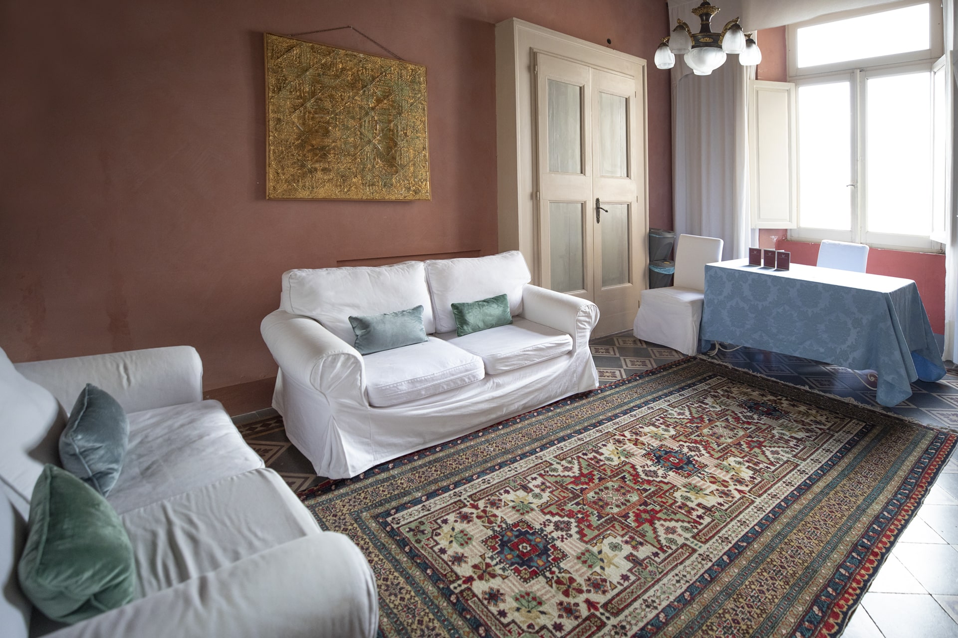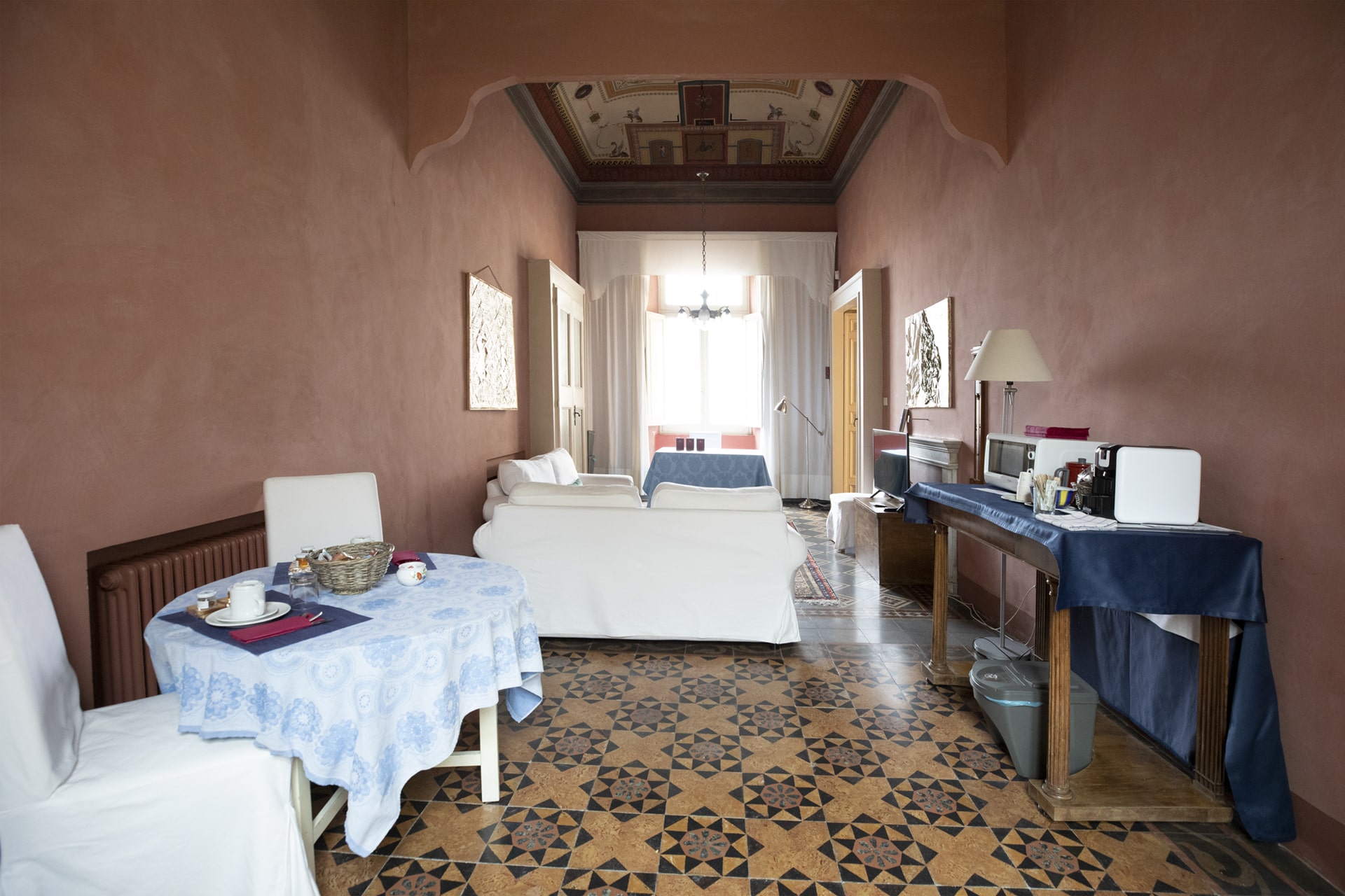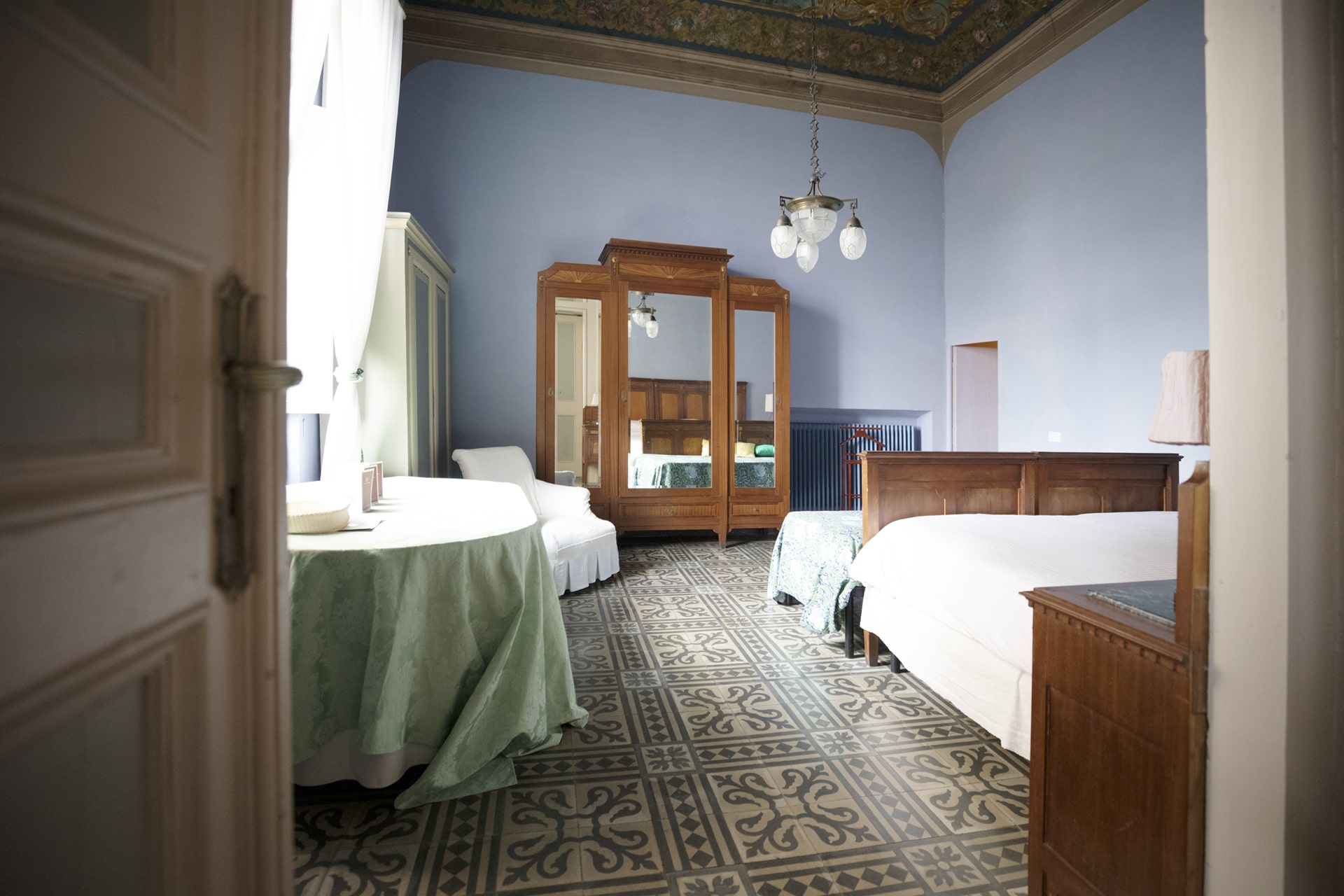 Conte Giacomo Azzurra is a large suite, divided into three rooms, with its own living room, frescoed ceilings, and period furniture, with an independent entrance that guarantees maximum privacy.
