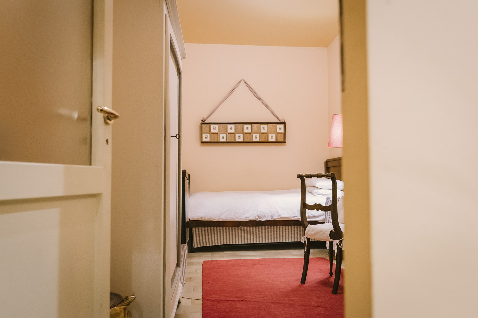 The mezzanine is a single bedroom which is accessed through a spectacular eighteenth-century gallery. The room lacks nothing to feel good for a few days.